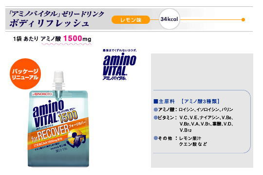 【味の素】「アミノバイタル」 for RECOVER 価格: 180円 レビュー評価:0.0 レビュー数:0 カラダを元気に保つために必須な栄養素・エネルギー源となる分岐鎖アミノ酸(BCAA)を配合したゼリードリンク。もうひと頑張りしたいときのクエン酸配合。■さわやかなレモン味です。 ■内容量 180g ■標準栄養成分 1袋(180g)あたり(当社分析値) エネルギー 34kcal たんぱく質 1.5g 脂質 0g 炭水化物 17g ナトリウム 92mg アミノ酸 ロイシン 0.6g イソロイシン 0.5g バリン 0.4g 1.5g Supported by 楽天ウェブサービス |